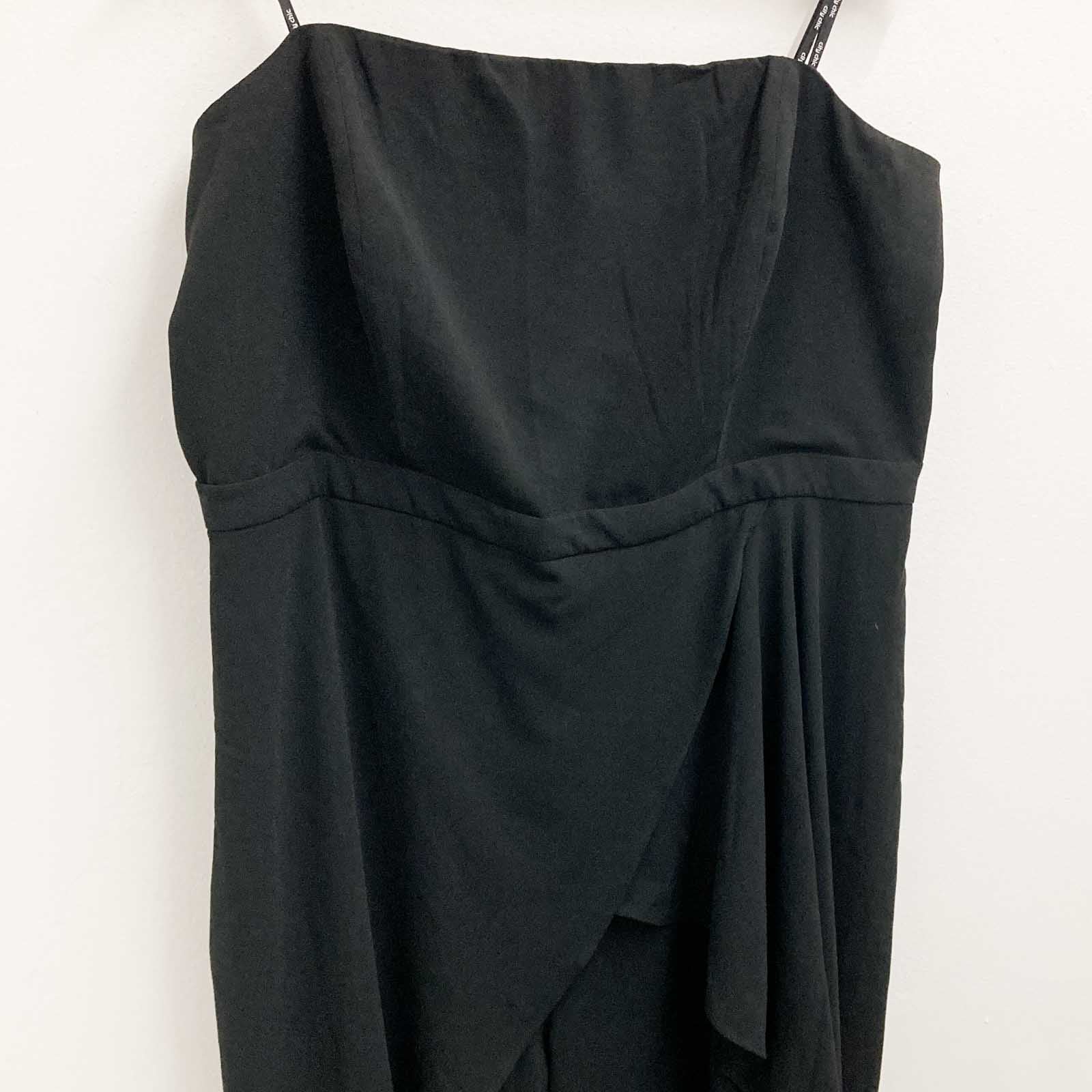 City Chic black strapless wide leg jumpsuit in UK 20. Key Features Include: - Strapless gel lined straight neckline - Invisible back zip closure - Light boning to bodice for shape - Elasticated back waist - Drape layered detailing - Wide leg cut - Partially satin lined - Full length In very good used condition with no obvious flaws.Details