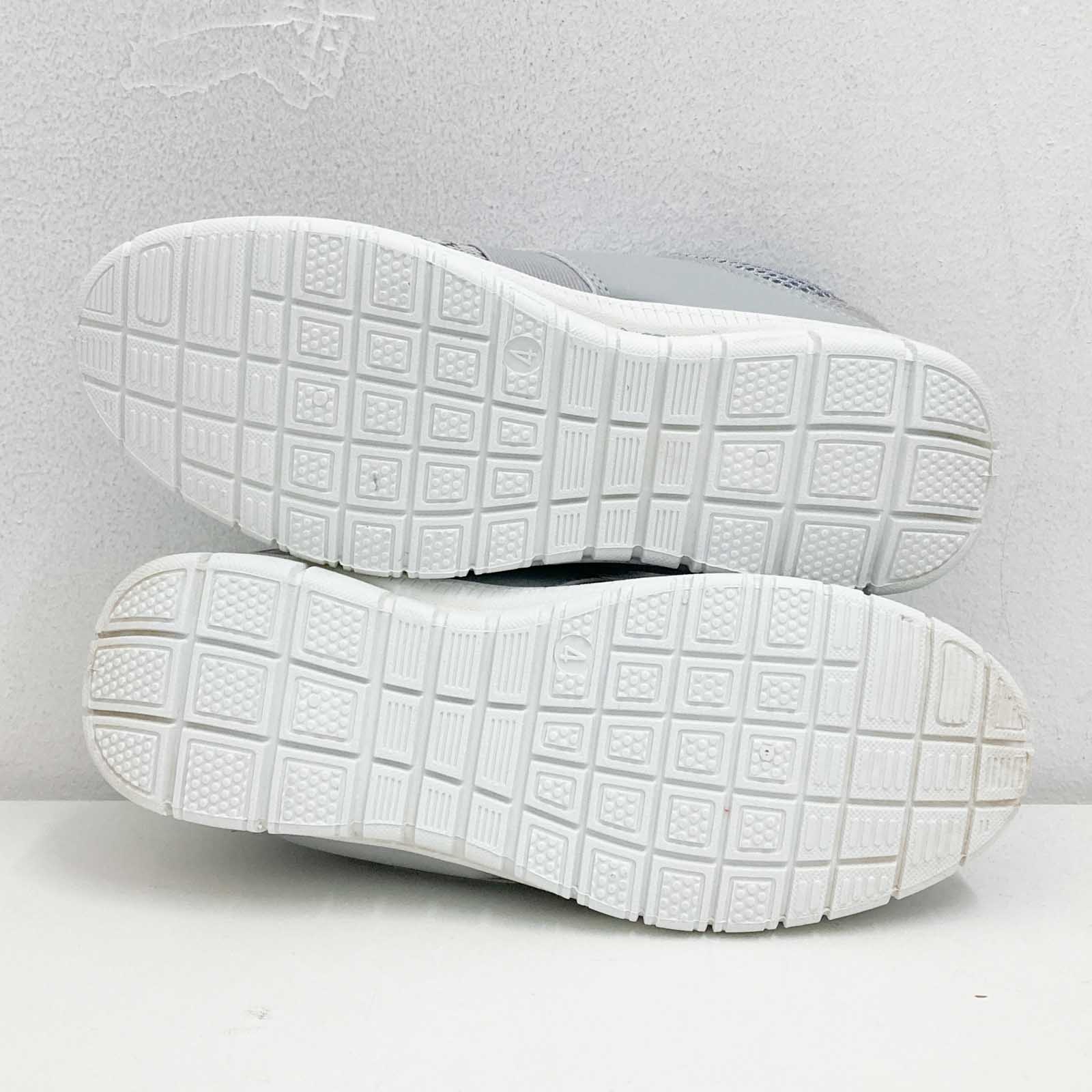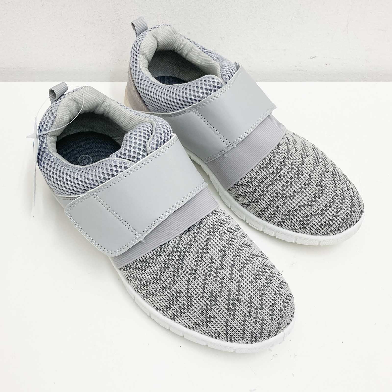 Mercury grey lightweight mesh trainers with grip sole and hook and loop fastening. UK 4. Features: - Hook and loop strap across the top - Grip sole - Lightweight mesh fabric upper New in box. Some marks on the heel of each trainer as shown in photos.