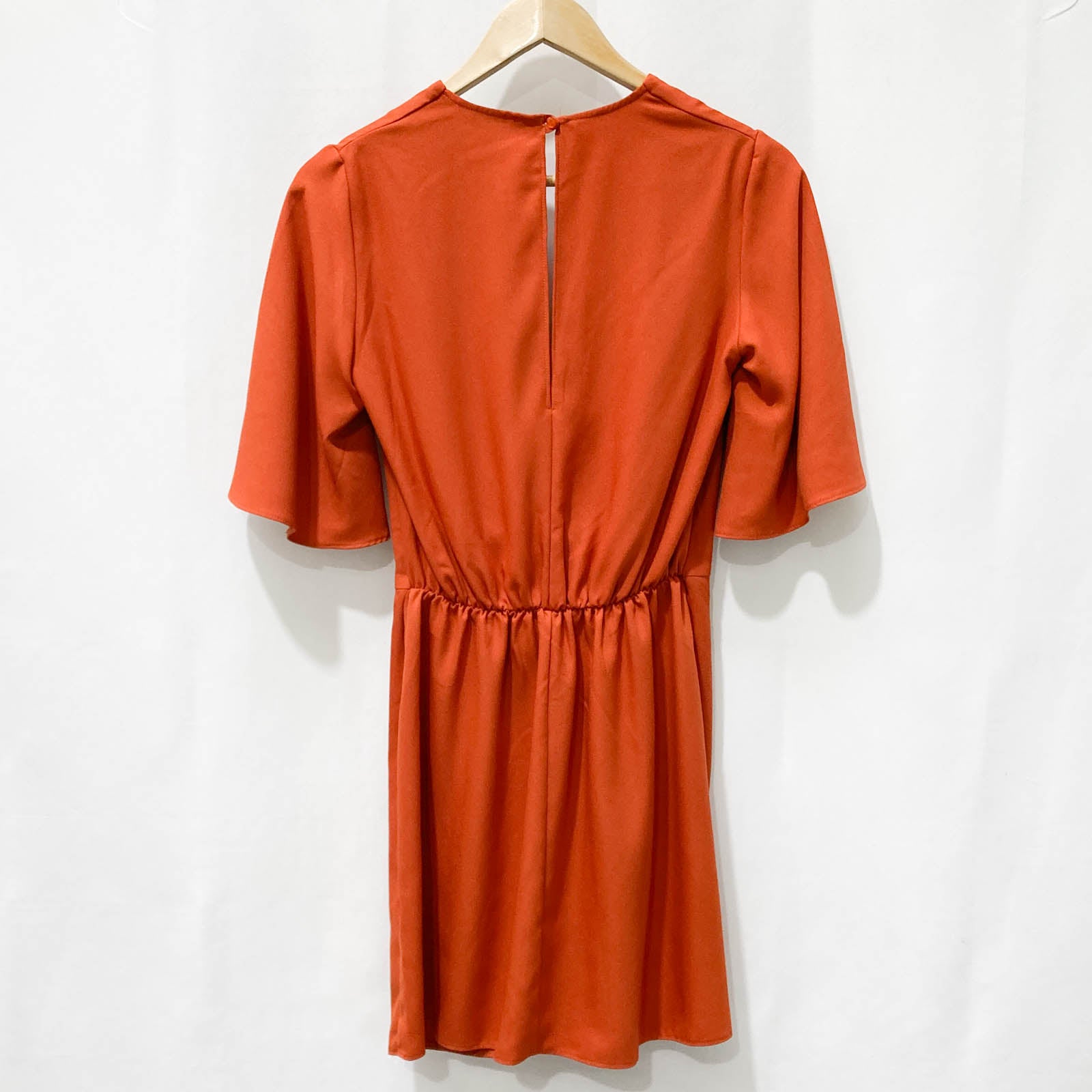 Miss Selfridge Dark Orange V-Neck Tie Front Short Dress UK 8