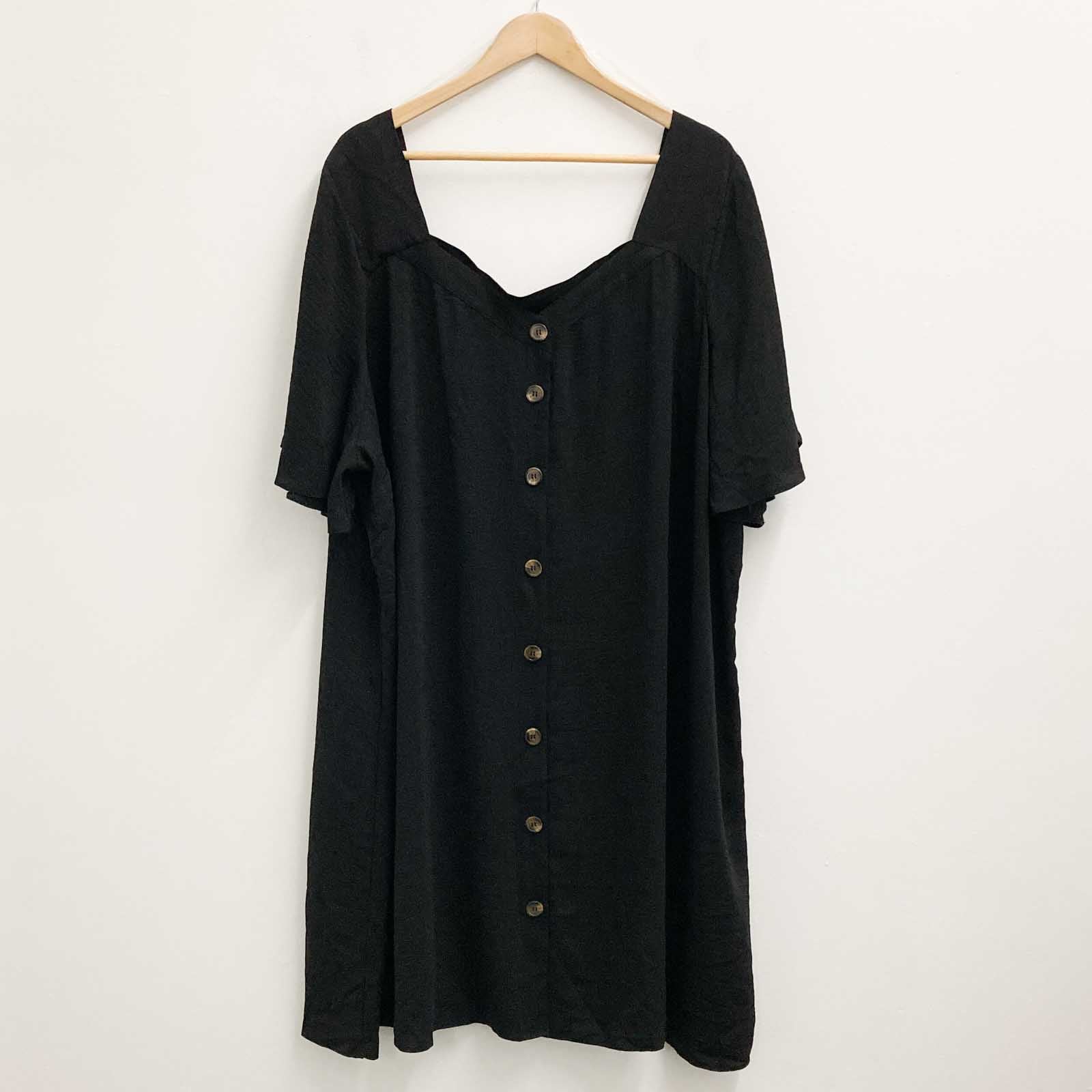 Evans Button Front Dress UK 32 Black Relaxed Fit Short Sleeve