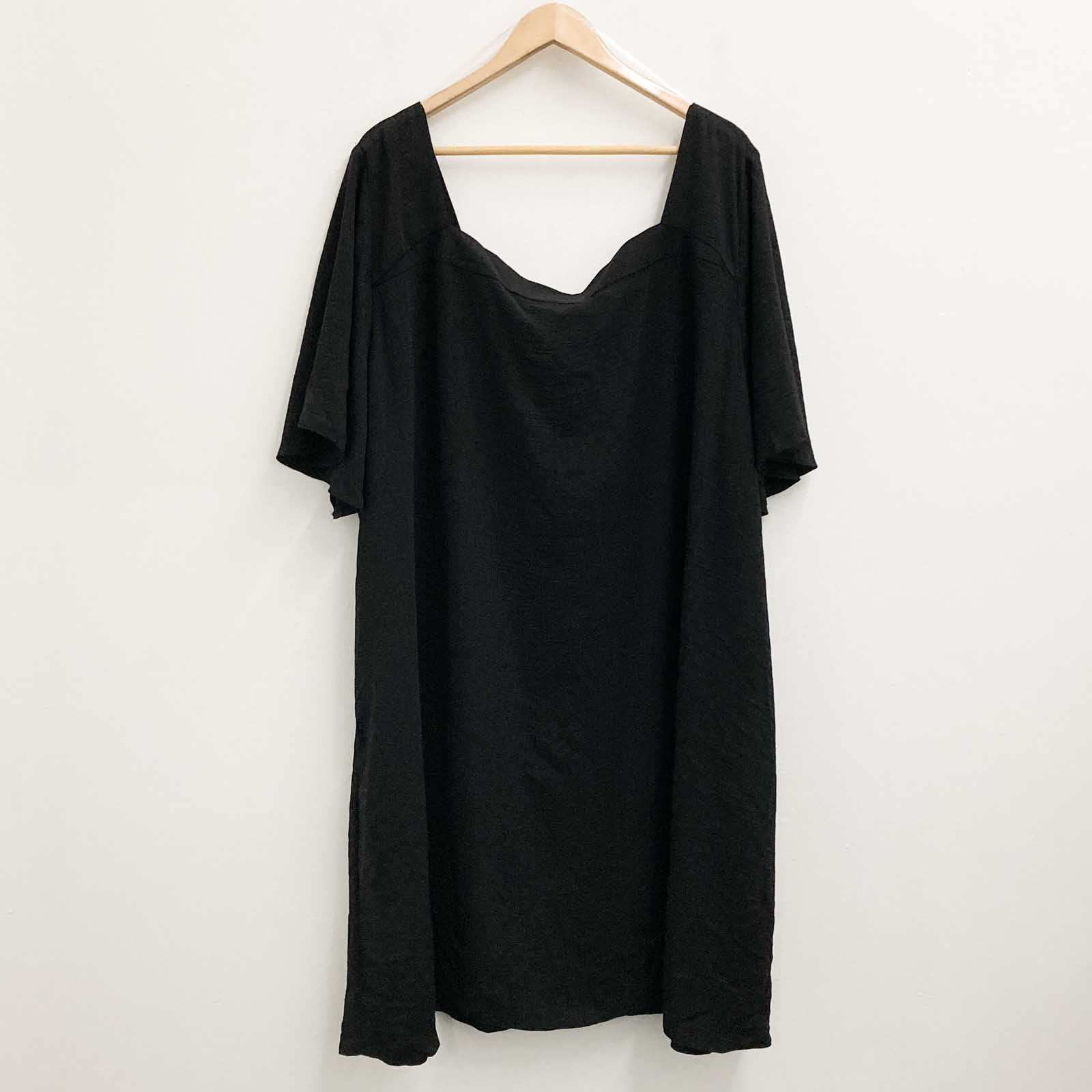 Evans black short sleeve relaxed fit button front dress in UK 32. Key Features Include: - V-neckline - Short sleeves - Buttoned front - Lightweight non-stretch fabrication - Relaxed fit - Unlined - Pull over style - Above knee length New with tags and no obvious flaws.Details