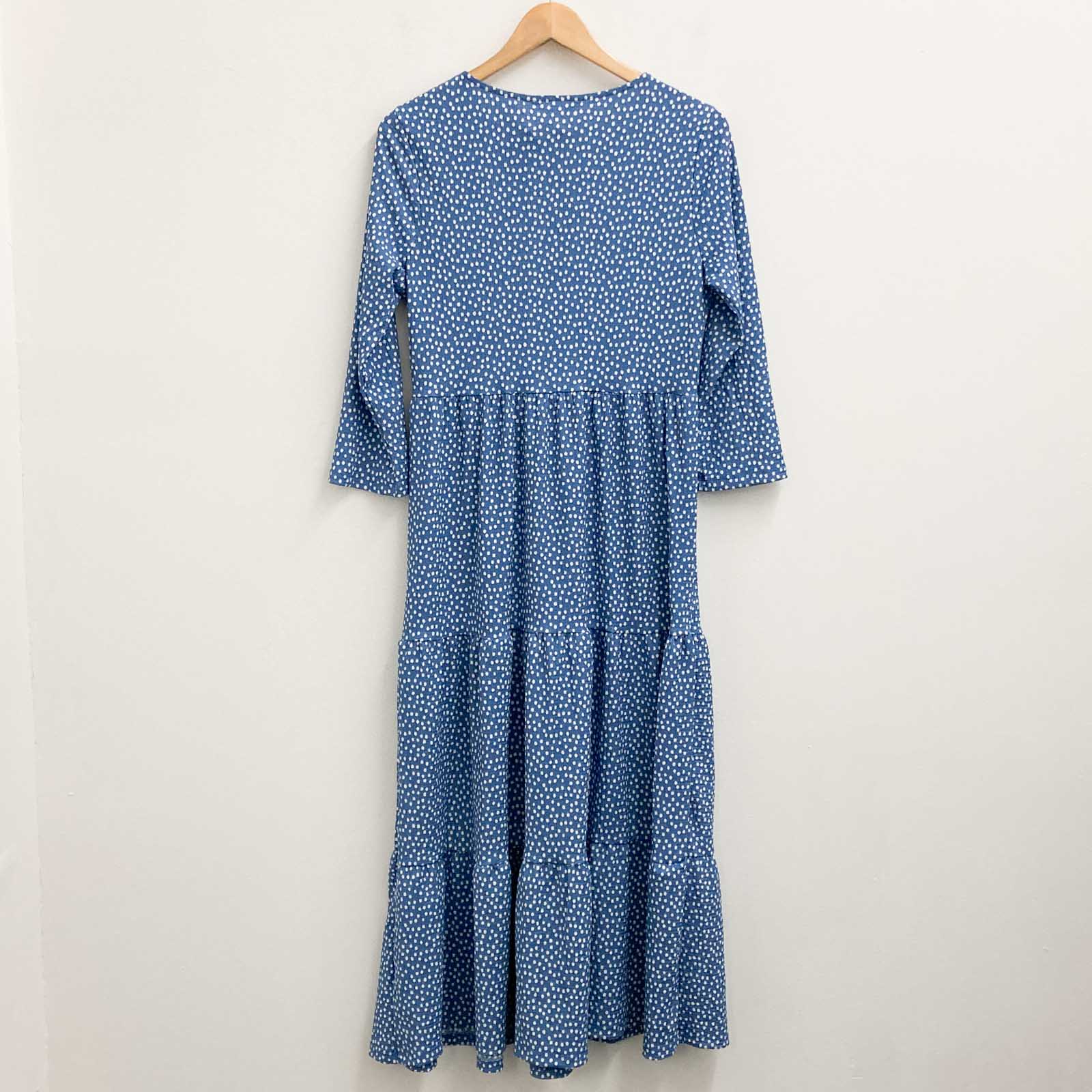 F&F Dress Size M Blue White Spot Print 3/4 Sleeve Tiered Maxi