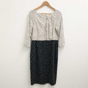 Laura Ashley Ivory & Black Spot Print 3/4 Sleeve Dress UK 12