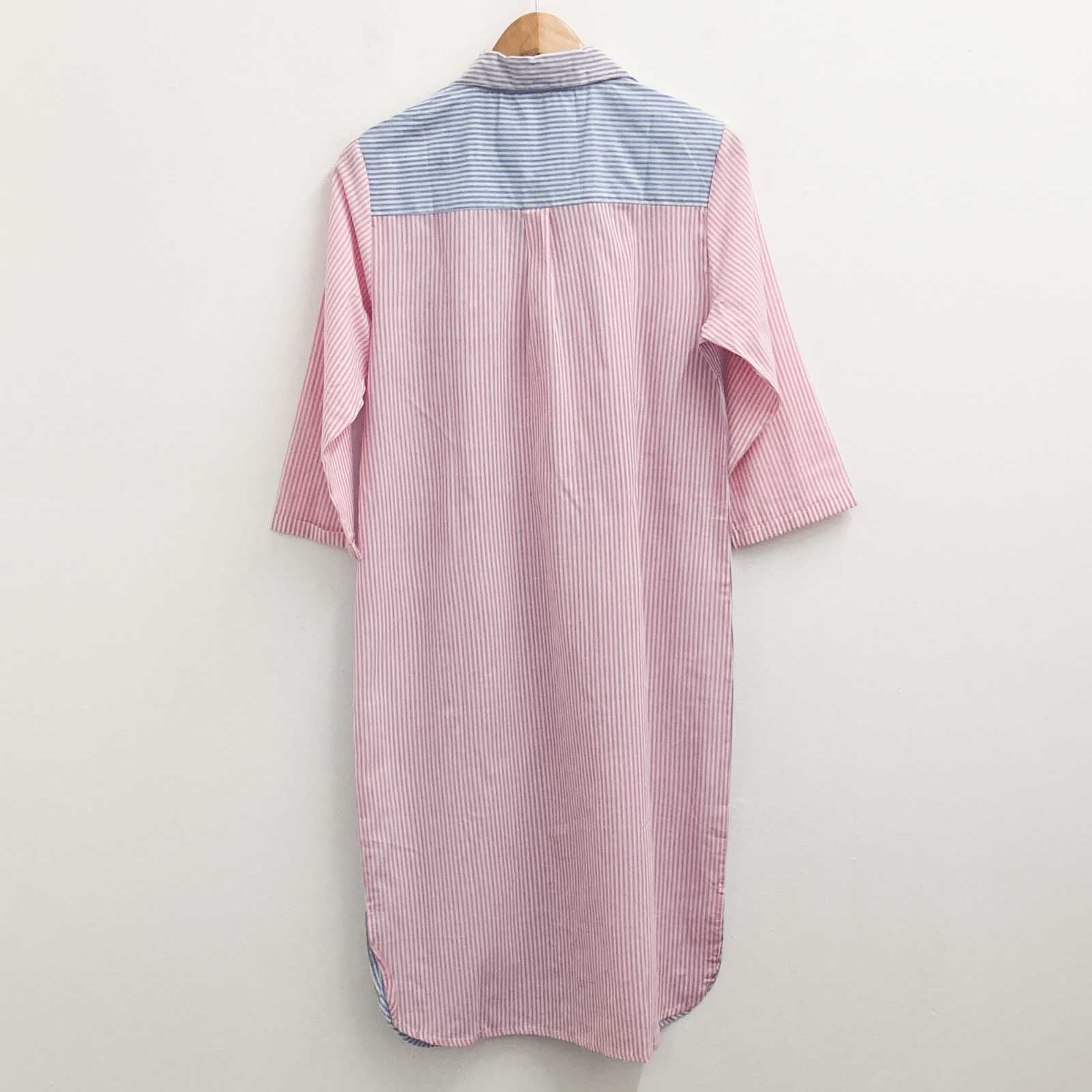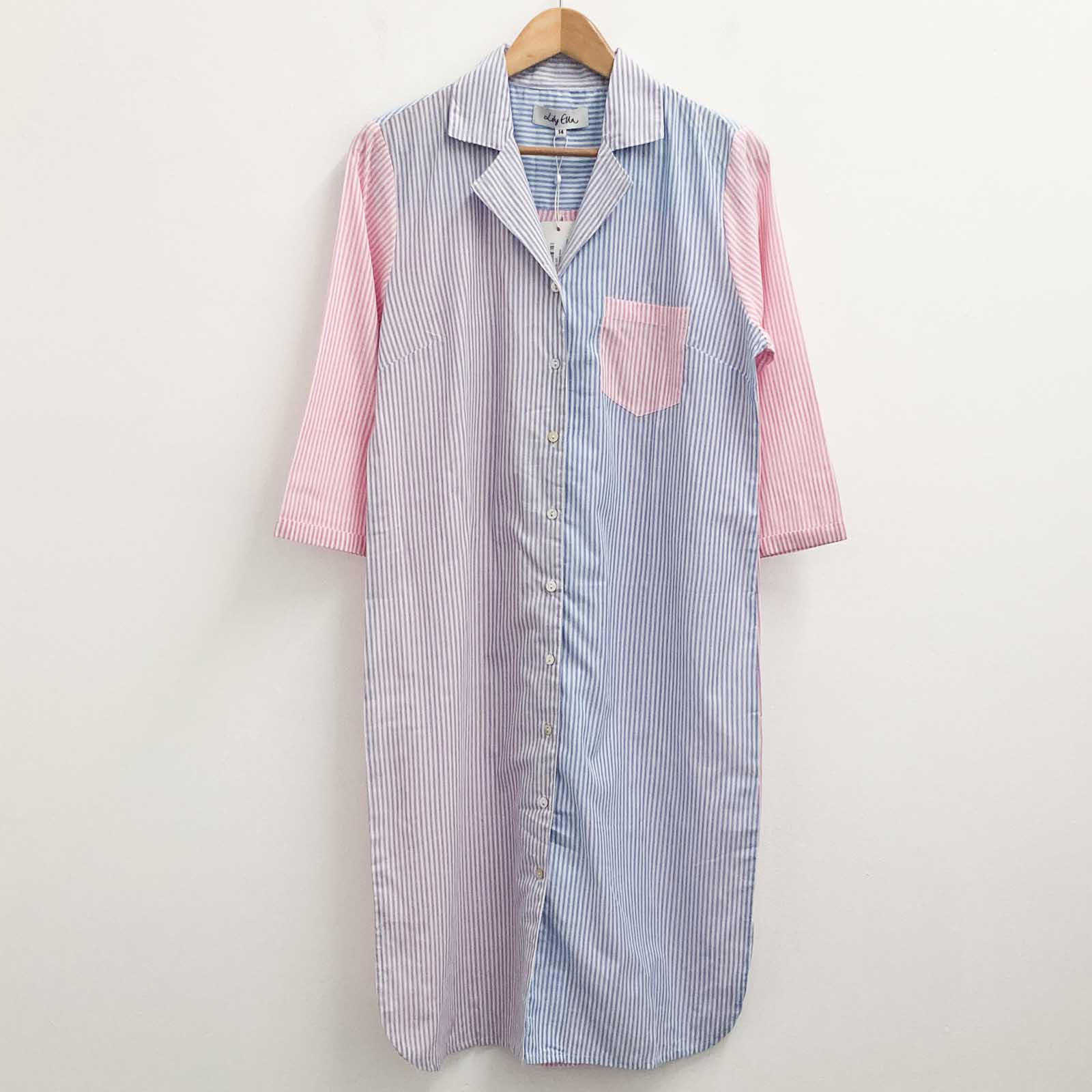 Lily Ella Dress UK 14 Blue Pink Striped Cotton Midi Shirt