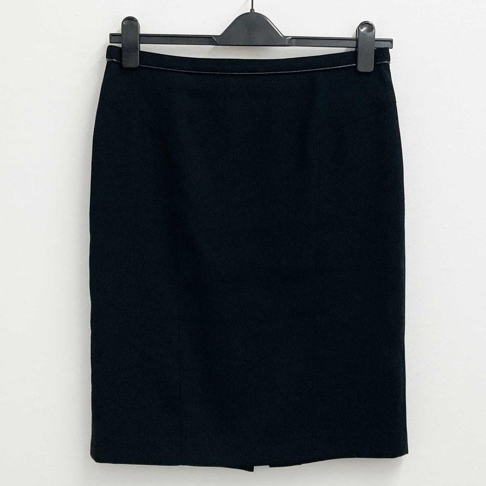 Linea black plain straight knee length skirt. UK 12. Features: - Zip at the back - Faux leather piping along waistband - Lined - Slit at the back In good used condition. Some of the faux leather piping is slightly chipped.Details
