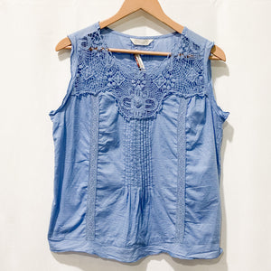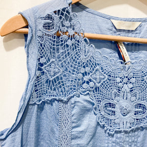 M&S Collection Dress UK 18 Blue Sheer Yoke Lace Trim
