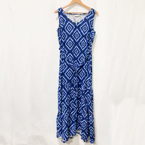 Avenue Maxi Dress UK 22/24 Blue Print Asymmetrical Hem V-Neck