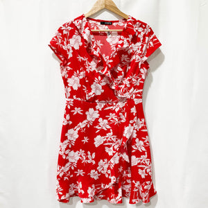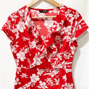 Loralette City Chic Dress UK 14/16 Red Floral Print Tiered Midi