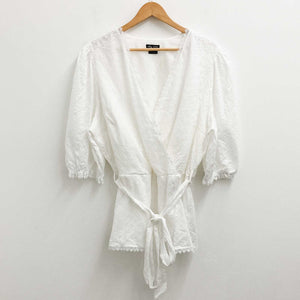 City Chic White Ribbed One Shoulder Cut Out Tee UK 14