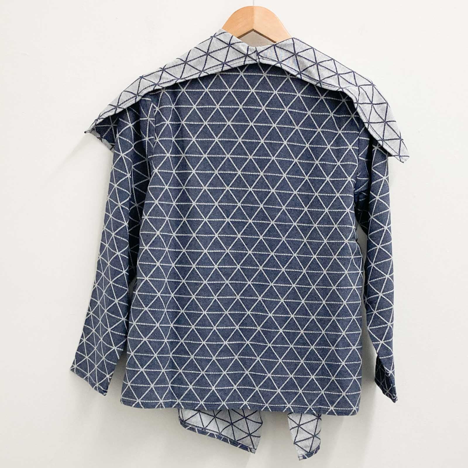 Lily Ella Blue Grey Waterfall Edge Unlined Cotton Open Front Jacket UK 12
