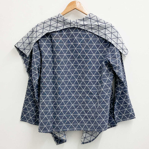 Lily Ella Jacket UK 10 Blue Grey Open Waterfall Front Denim Look Patterned