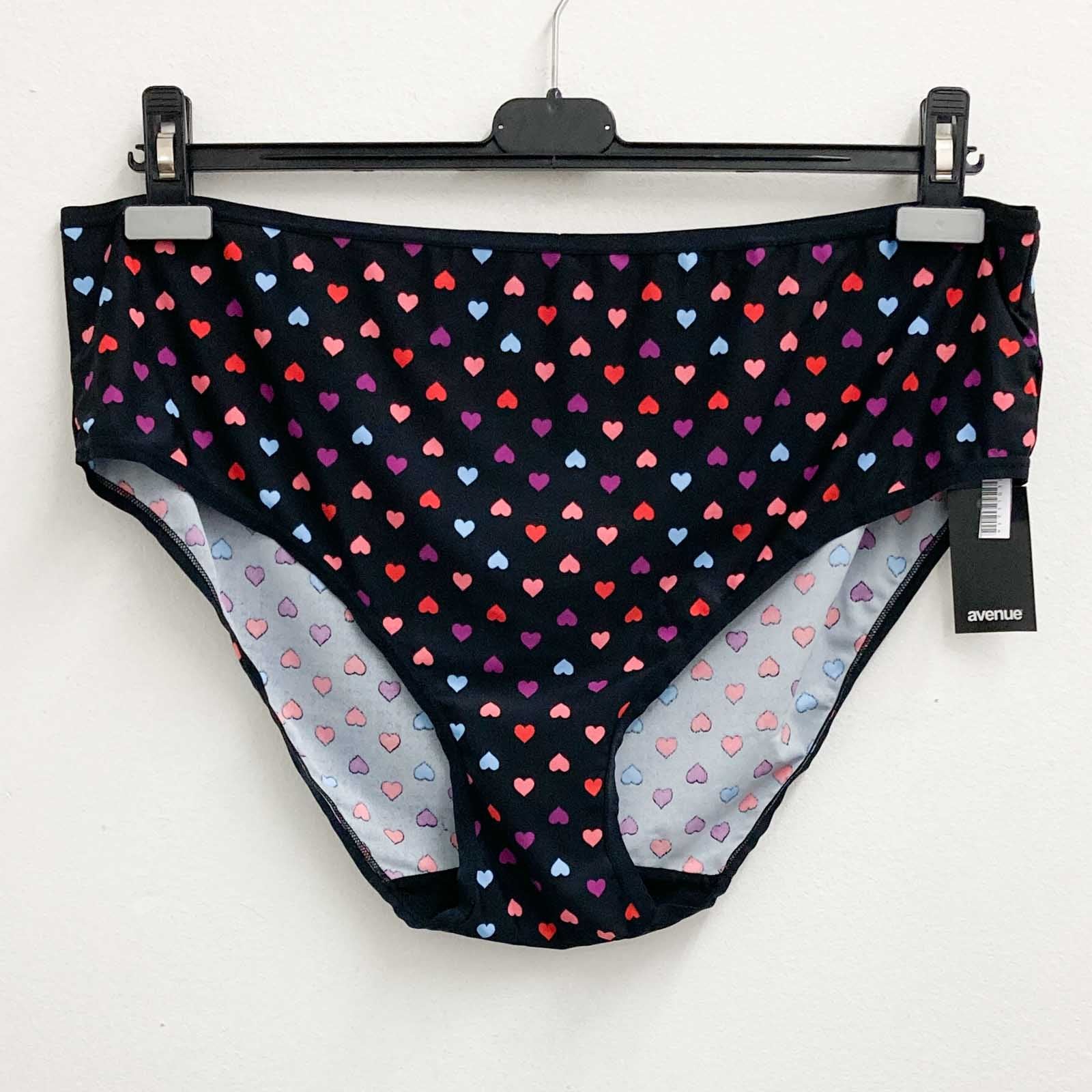 Avenue black heart print microfibre hi cut briefs in UK 26/28. Key Features Include: - Signature Avenue branded elastic waistband - Full coverage design - High rise waist - Soft high stretch microfibre finish - Cotton comfort gusset panel New with tags and no obvious flaws.Details