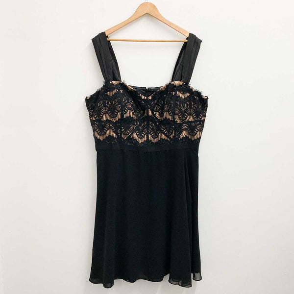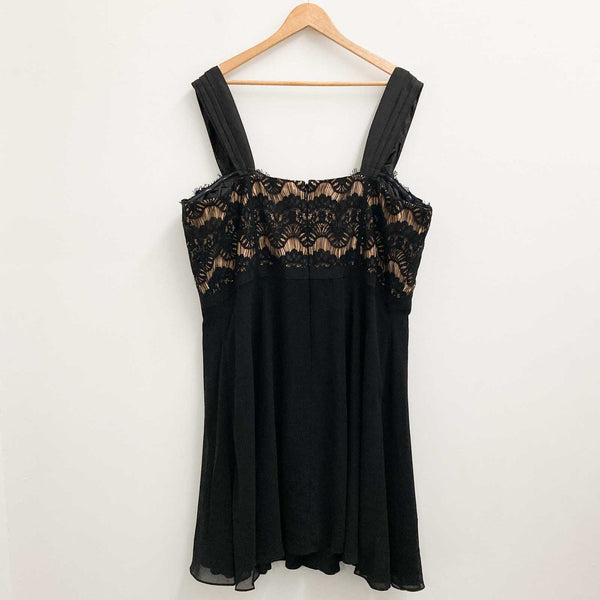 City Chic Black Eyelash Lace Overlay Knee Length Dress UK 22