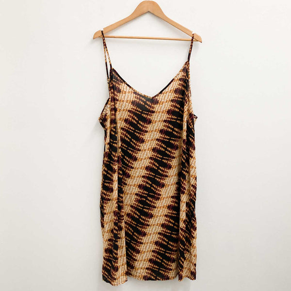 City Chic Brown Burnt Swirl Print Mini Cami Slip Dress UK 24