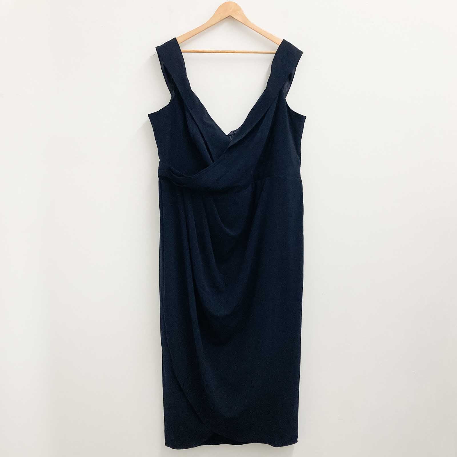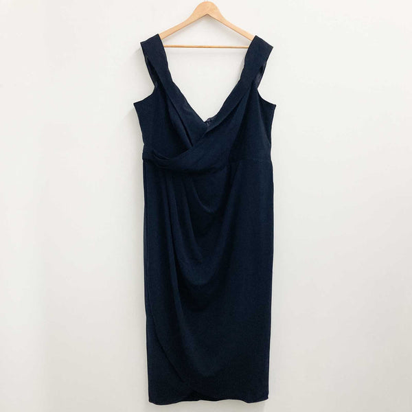 City Chic Navy Faux Wrap Off Shoulder Dress UK 24