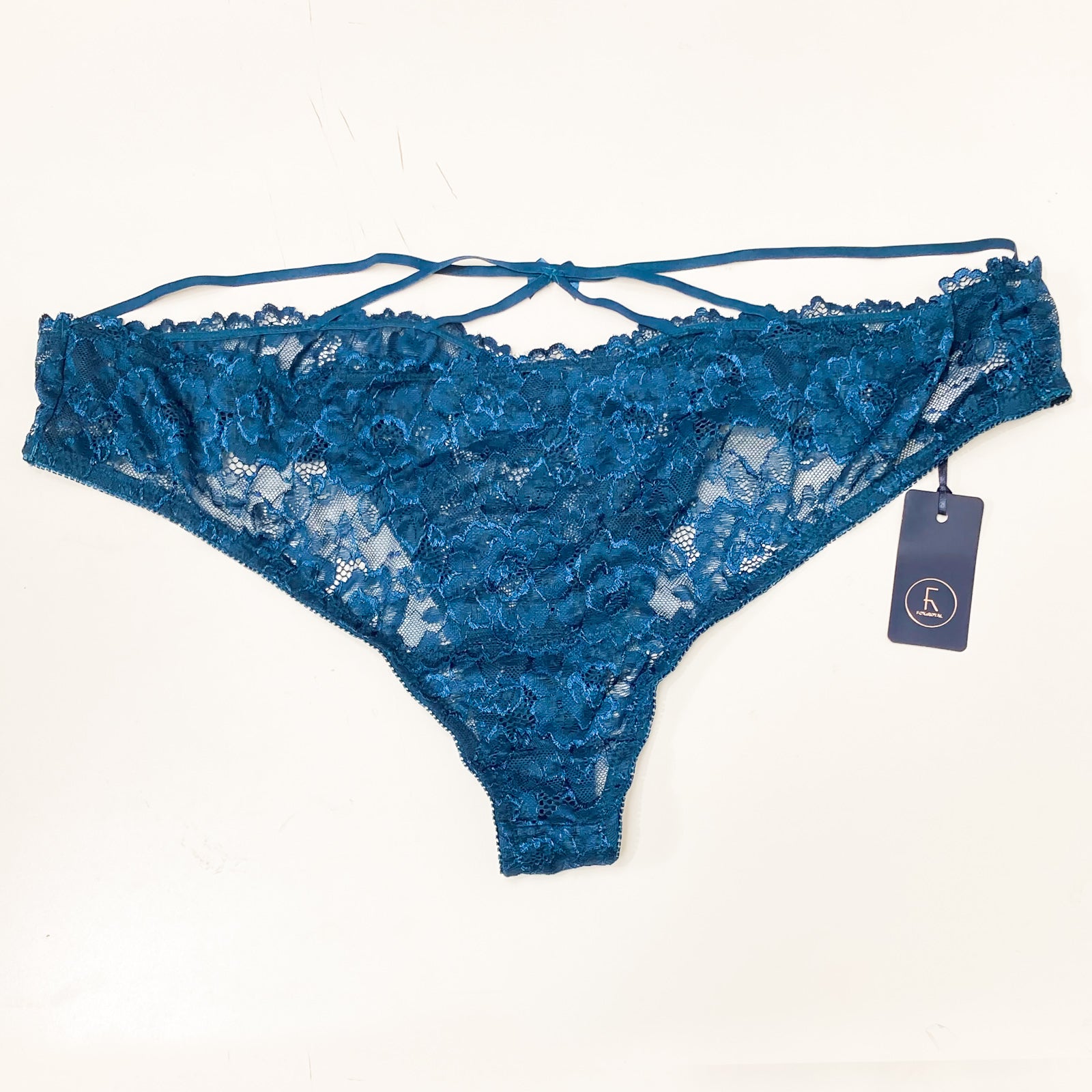 Fox & Royal by City Chic blue lace strappy panty in UK 20. Key Features Include: - Soft stretch floral lace fabrication - Satin bow accent - Back strap detail - Cheeky cut New with tags and no obvious flaws.Details