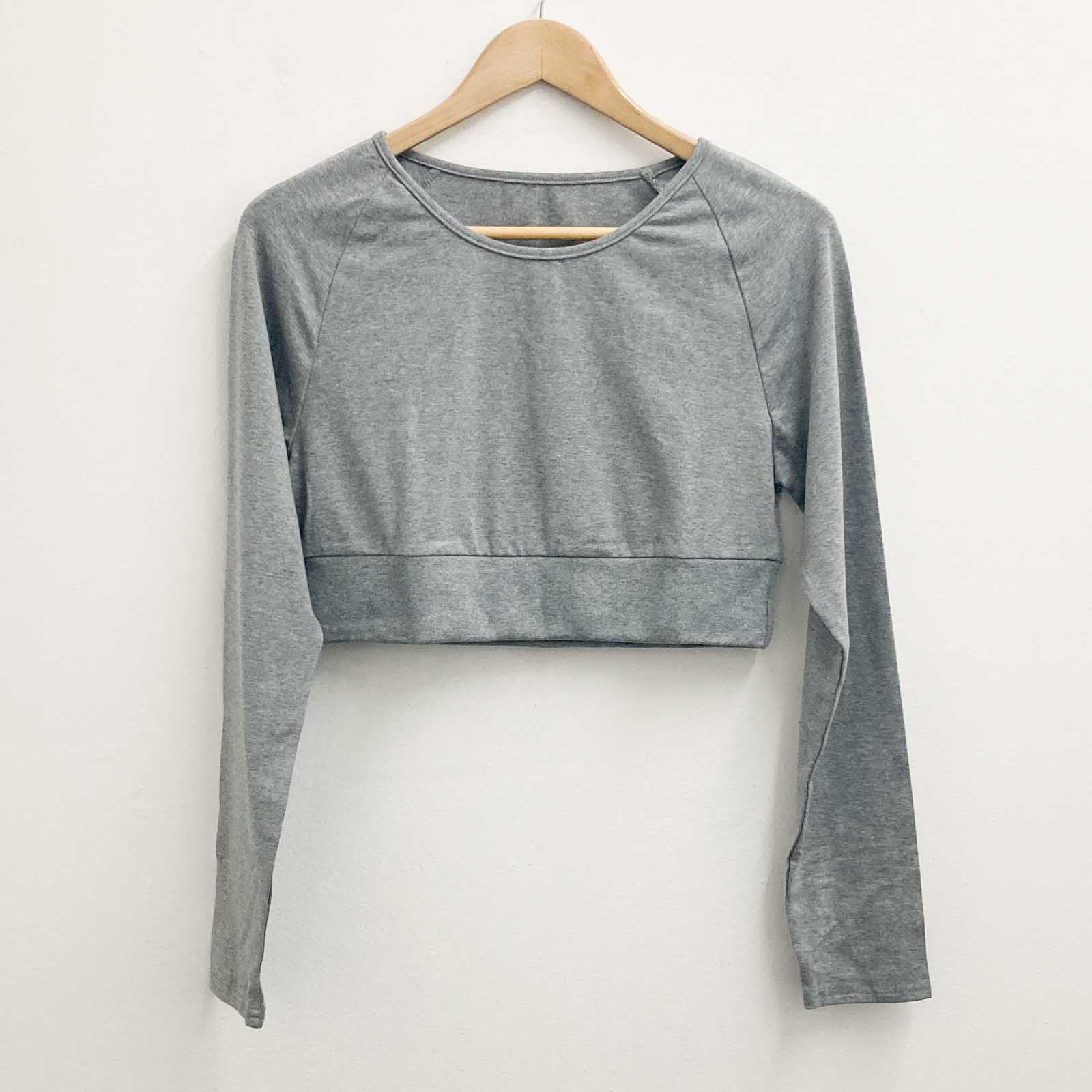 Gossypium Grey Marl Leap Long Sleeve Crop Top UK16