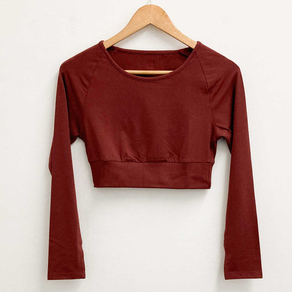 Gossypium Red Leap Long Sleeve Organic Cotton Blend Crop Top UK 12