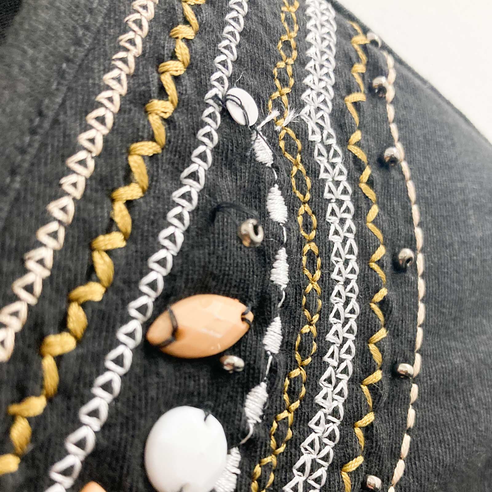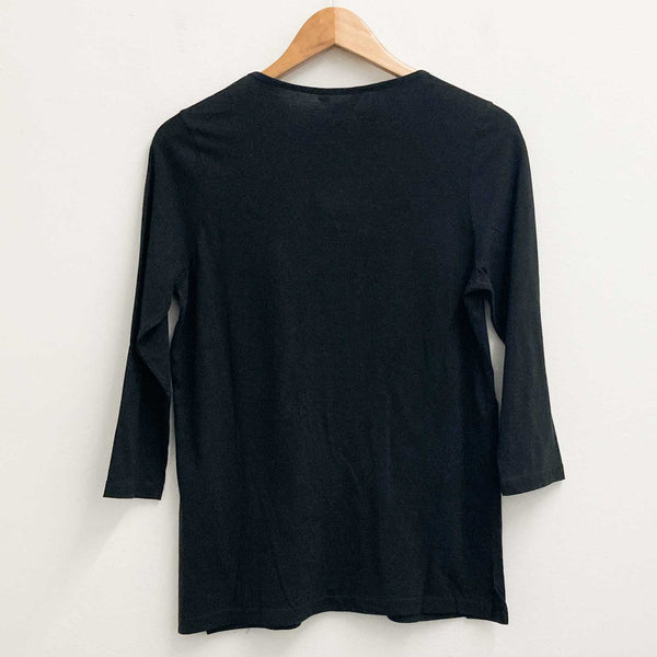 Julipa Top UK 10 Black Beaded Embroidered V-Neck 3/4 Sleeve Cotton