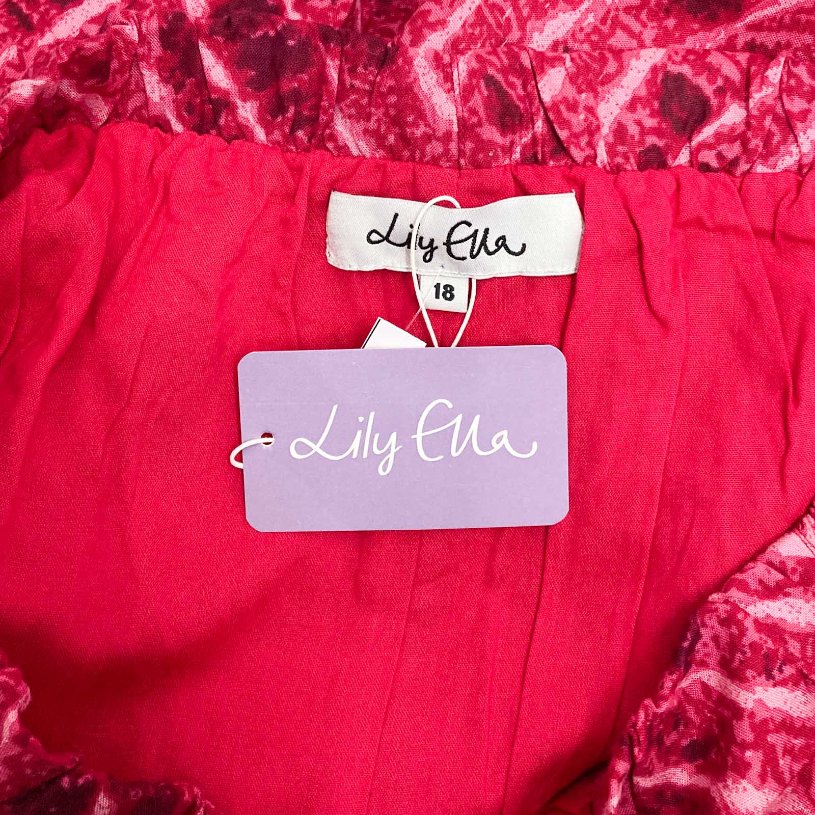 Lily Ella deep pink chevron print skirt in UK 18. Features: - Pull-on style with elasticated waistband - Fully lined - Below knee - Side seam pockets New with tags and no obvious flaws.Details