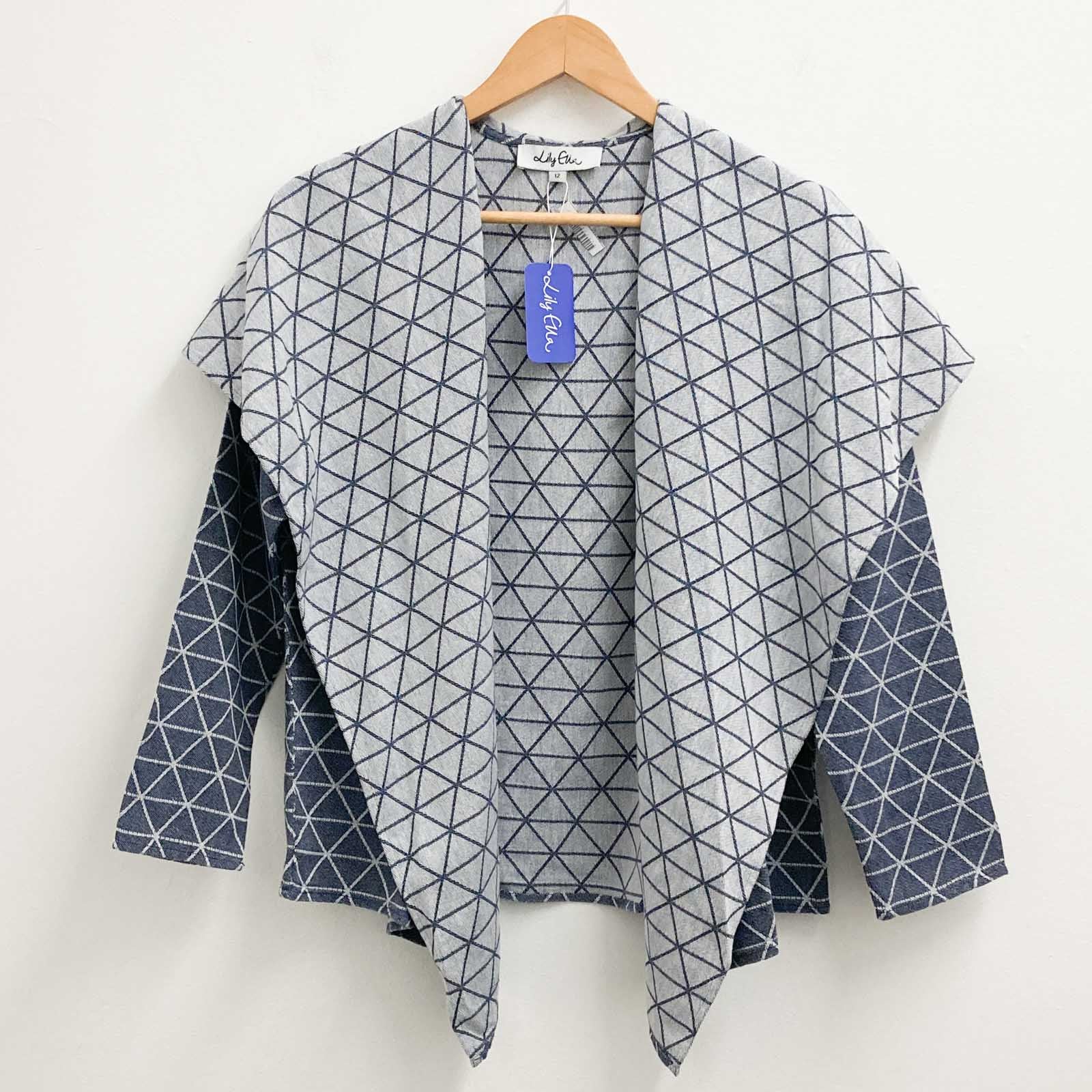 Lily Ella denim look blue/grey open front cotton jacket in UK 12. Features: - Long Sleeves - Waterfall edge - Unlined - 100% cotton Brand new with tags and no obvious flaws.Details
