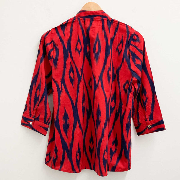 Lily Ella Red & Navy Ikat Print Cotton 3/4 Sleeve Blouse UK 12