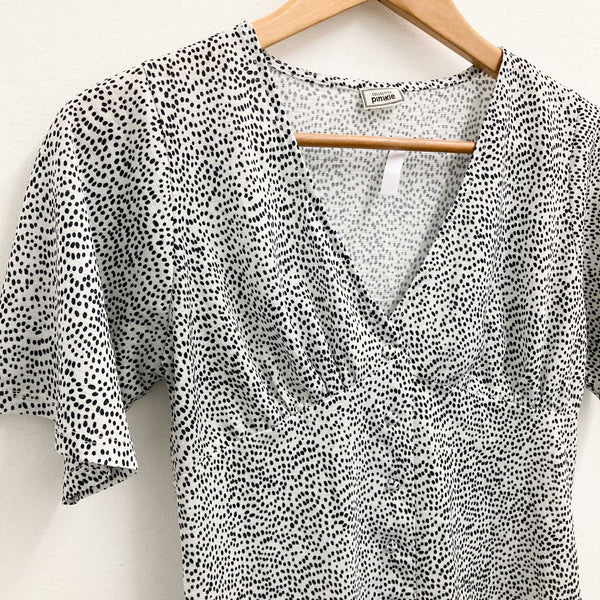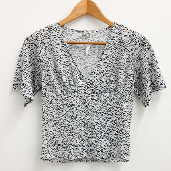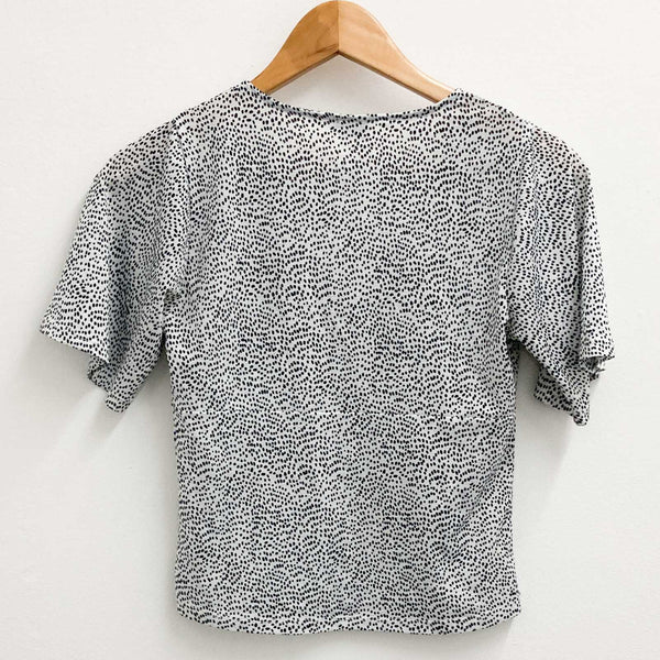 Pimkie White & Black Spot Print Top UK S Key Features Include: - Wrap v-neck - Short flutter sleeves - Decorative button front Used, excellent condition, no obvious flaws.