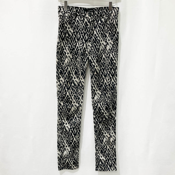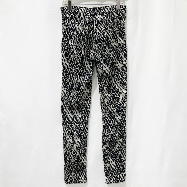 These Kooples Black Patterned Skinny Trousers W24 are the perfect addition to your wardrobe. Crafted from a cotton blend, these trousers offer a comfortable fit and feel. The black patterned design adds a stylish touch to any outfit, making them ideal for both casual and formal occasions. The trousers feature a skinny fit that is flattering and easy to style with other pieces in your wardrobe. In great preloved condition. No obvious flaws.Details